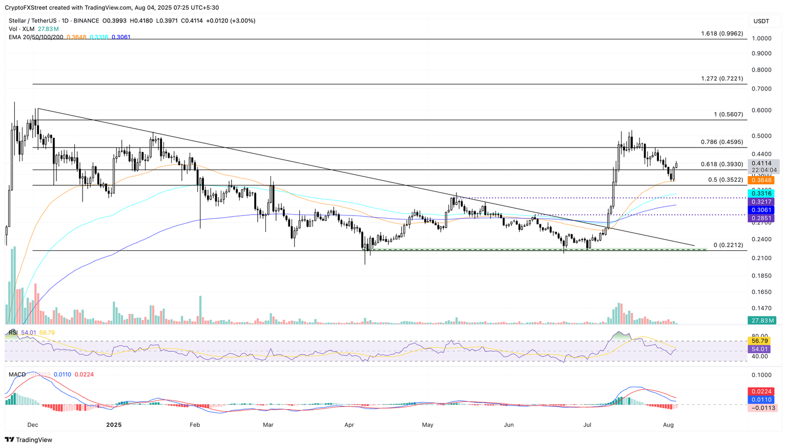 Stellar bounces off the 50-day EMA, targets $0.45