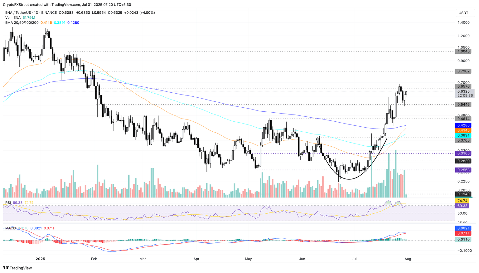 - Ethena edges higher by 4% after bouncing off a crucial support on Wednesday.