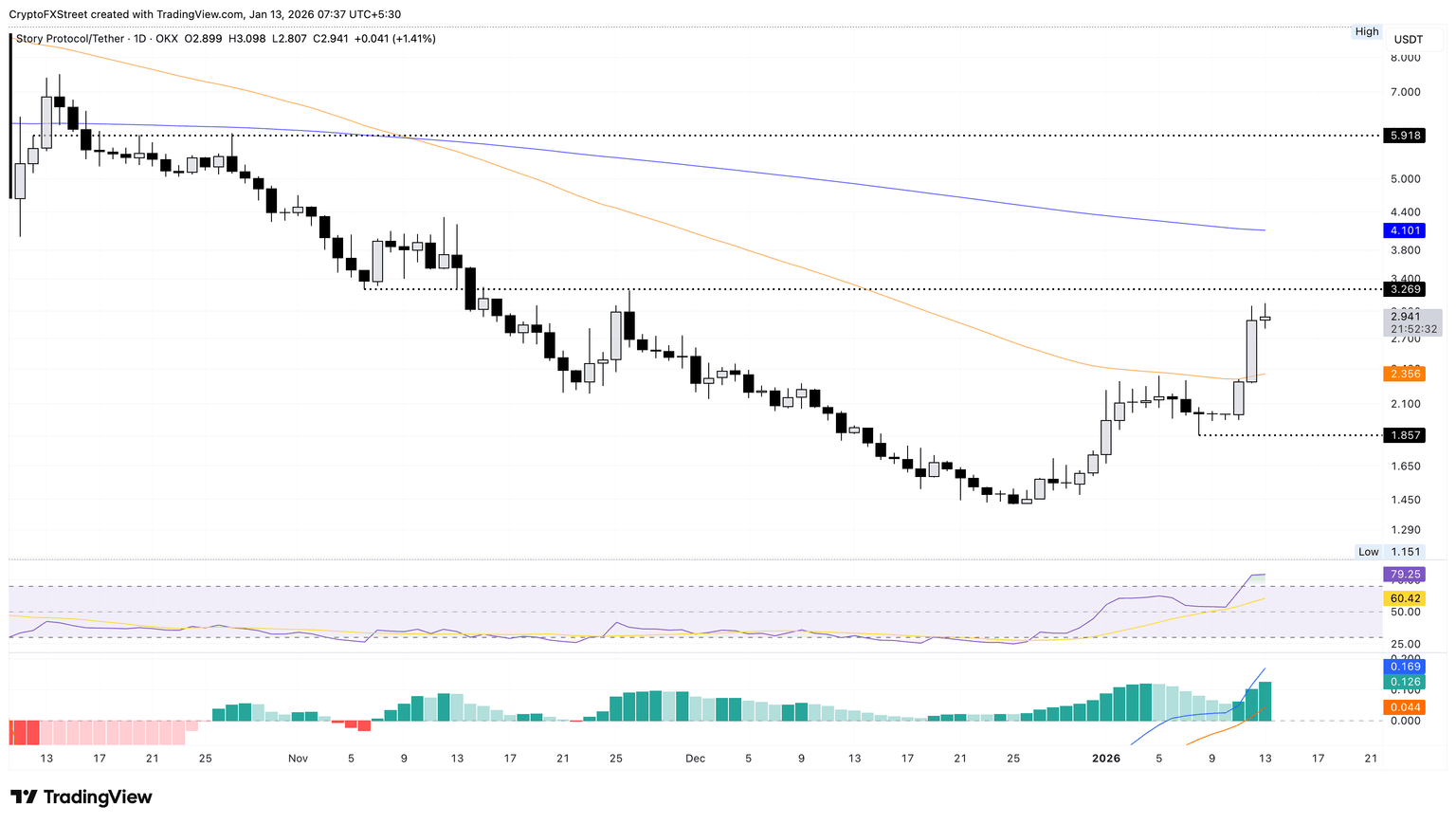 Story edges higher by over 1% at press time on Tuesday, extending the 27% gains from Monday. The meme coin’s third day of recovery approaches the $3.00 round figure, close to the November 6 low at $3.26, which previously capped gains on November 26.