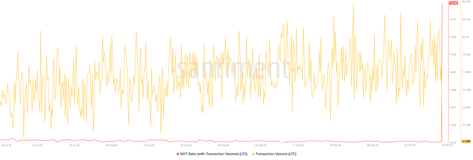 Litecoin edges higher by over 2% at the time of writing on Friday, adding gains on the 6% rise from the previous day. The sudden recovery outpaced the network activity, as indicated by the network value to transactions (NVT) ratio.