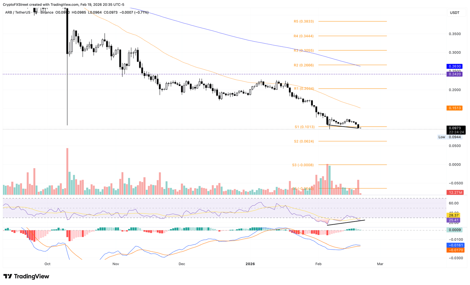 Arbitrum is trading below the $0.1000 psychological level at the time of writing at press time on Friday, following a 9% decline the previous day. The ARB token has been in a steady decline since Sunday, recording an over 15% loss so far this week.