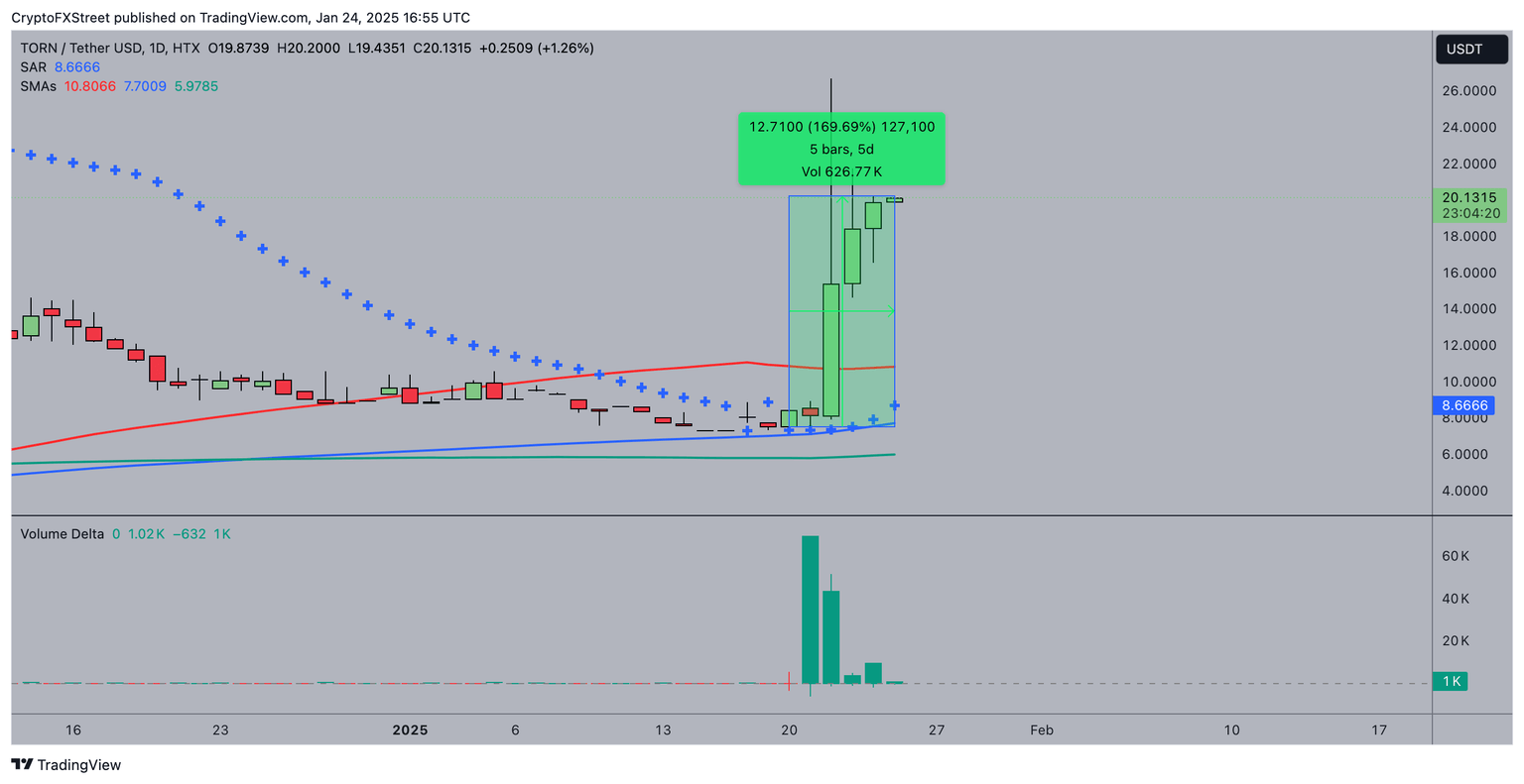 TornadoCash (TORN) price hit $20 on Friday, having increased by nearly 170% since Trump’s inauguration. TORN price appears poised for more near-term gains as Ethereum’s Vitalik Buterin issued statements calling for the release of the mixer protocol’s co-founders.