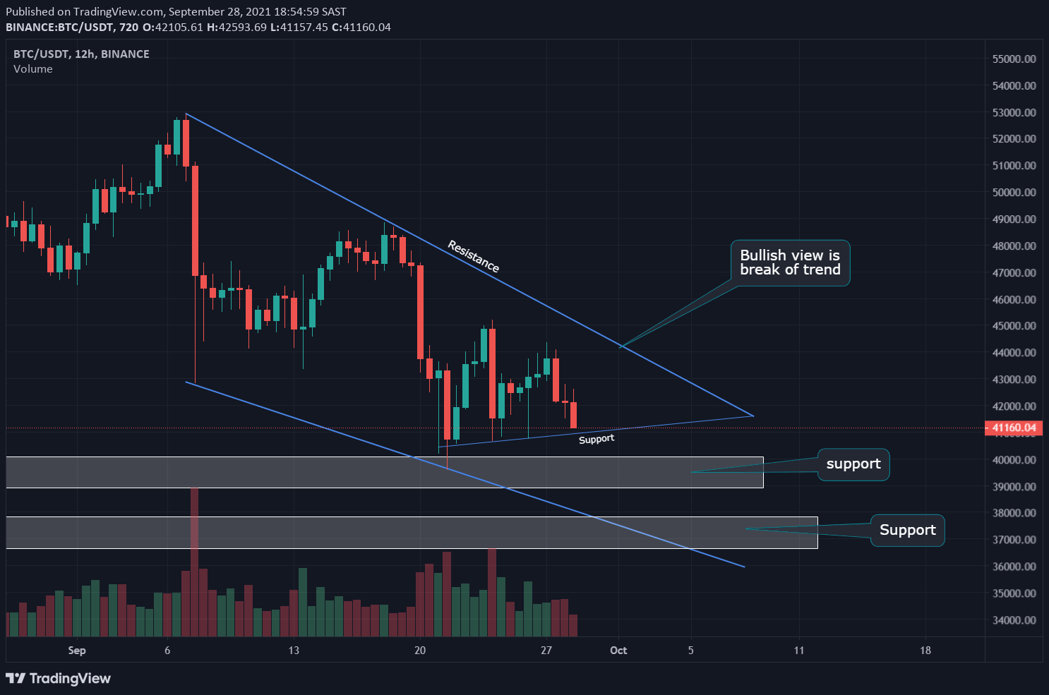 This has turned out to be a prescient observation because the price of BTC is trading at a price of $41,300 at the time of writing.