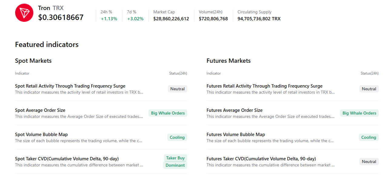 The CryptoQuant chart below supports a positive outlook, as TRX’s spot and futures markets show large whale orders and cooling conditions, signaling a potential rally ahead.
