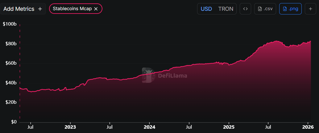 DefiLama data shows that TRX’s stablecoin total supply has risen since the end of December and currently stands at $82.85 billion, nearing the record high of $83 billion in early August. Such stablecoin activity and value increase on the Tron project indicate a bullish outlook, as they boost network usage and can attract more users to the ecosystem.