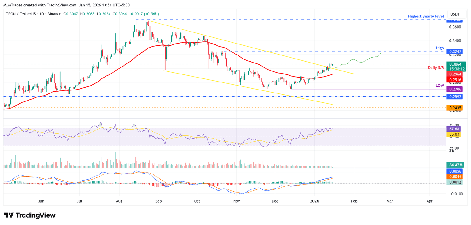 Tron Price Forecast: TRX bulls aiming for the $0.32 mark
