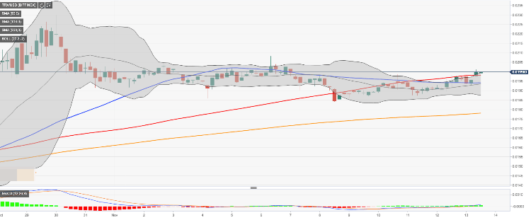 TRX/USD jumped to $0.0201 following the announcement. At the time of writing, the coin is changing hands at $0.0199, down from the recent peak. Despite the retreat, it is still 3% higher from this time on Tuesday. A sustainable move above $0.0200 will allow the upside momentum to gain traction.