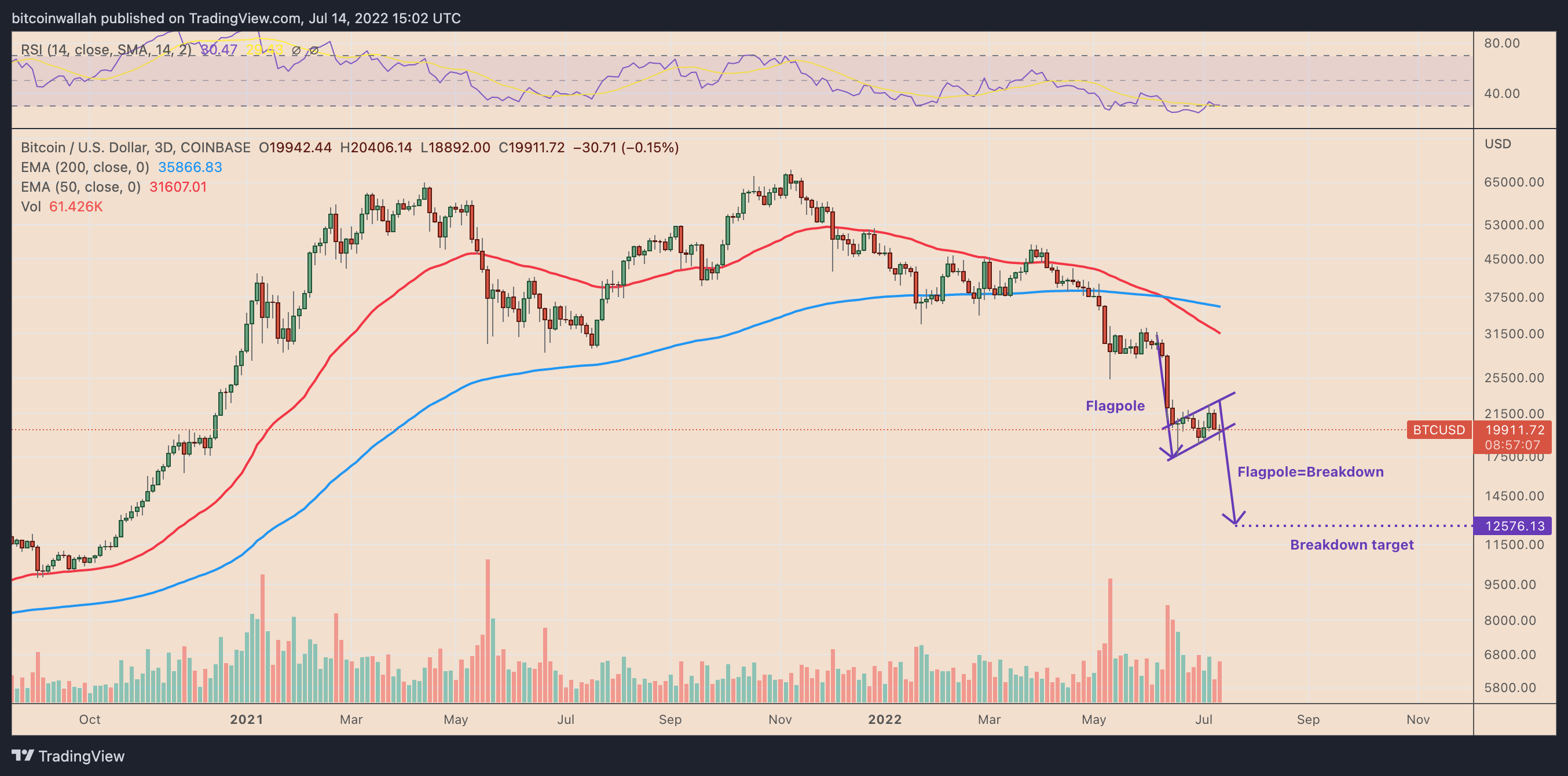 BTC/USD three-day price chart featuring "bear flag'"setup. Source: TradingView