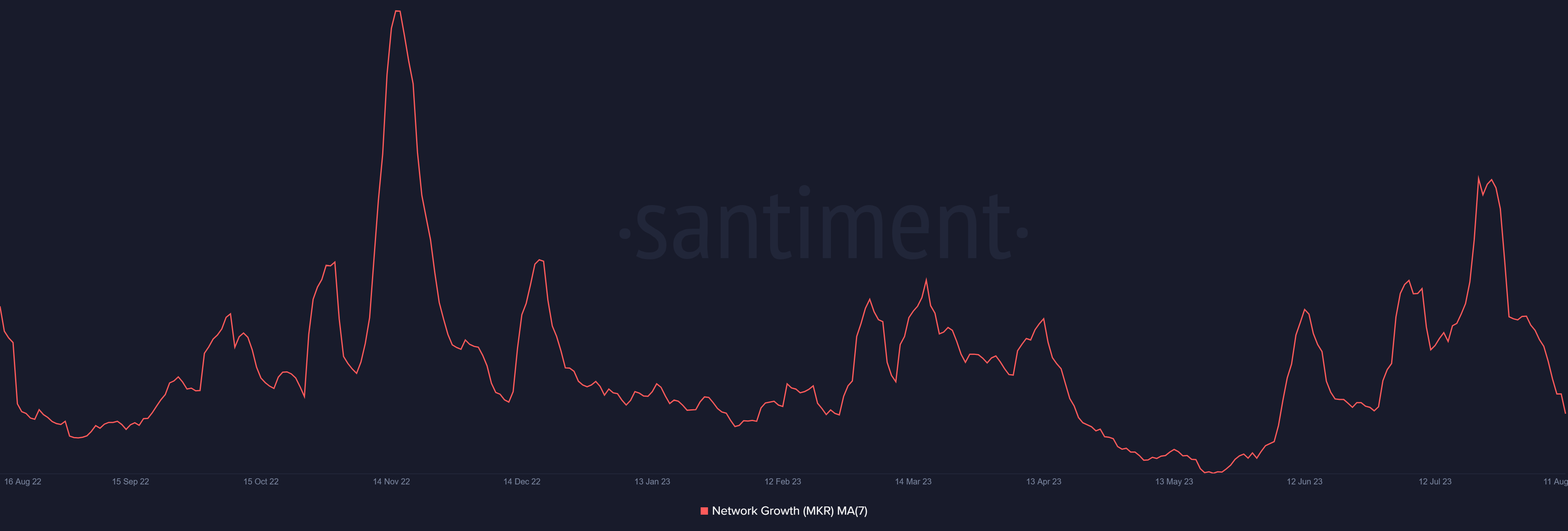However, even though the drawdown was not significant, it did manage to spark concern and fear in the hearts of investors to the point where the project has seemingly lost the traction it gained. Network growth, which measures the rate at which new addresses are formed on the chain, has dropped to a two-month low, suggesting Maker is losing the interest of new users.