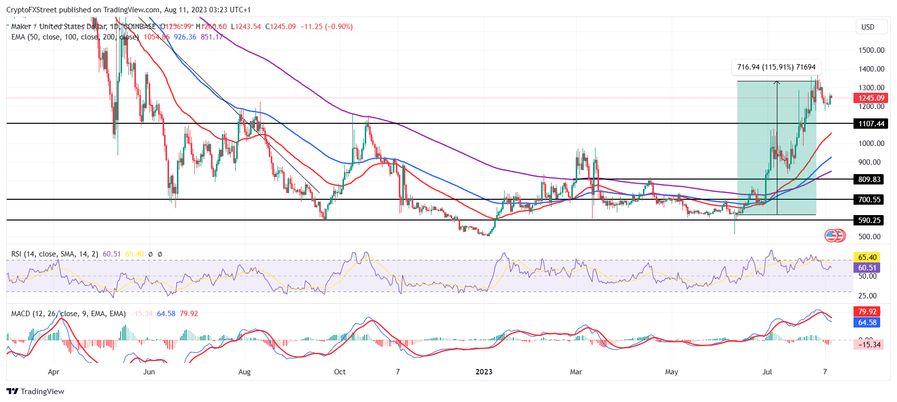 Maker price between mid-June and throughout July posted a 115% increase, bringing MKR to trade above $1,300. Some corrections since then have brought the altcoin down to the current market price of $1,245. This correction was necessary and forecasted since the market was overheated following the rally and needed to cool down.
