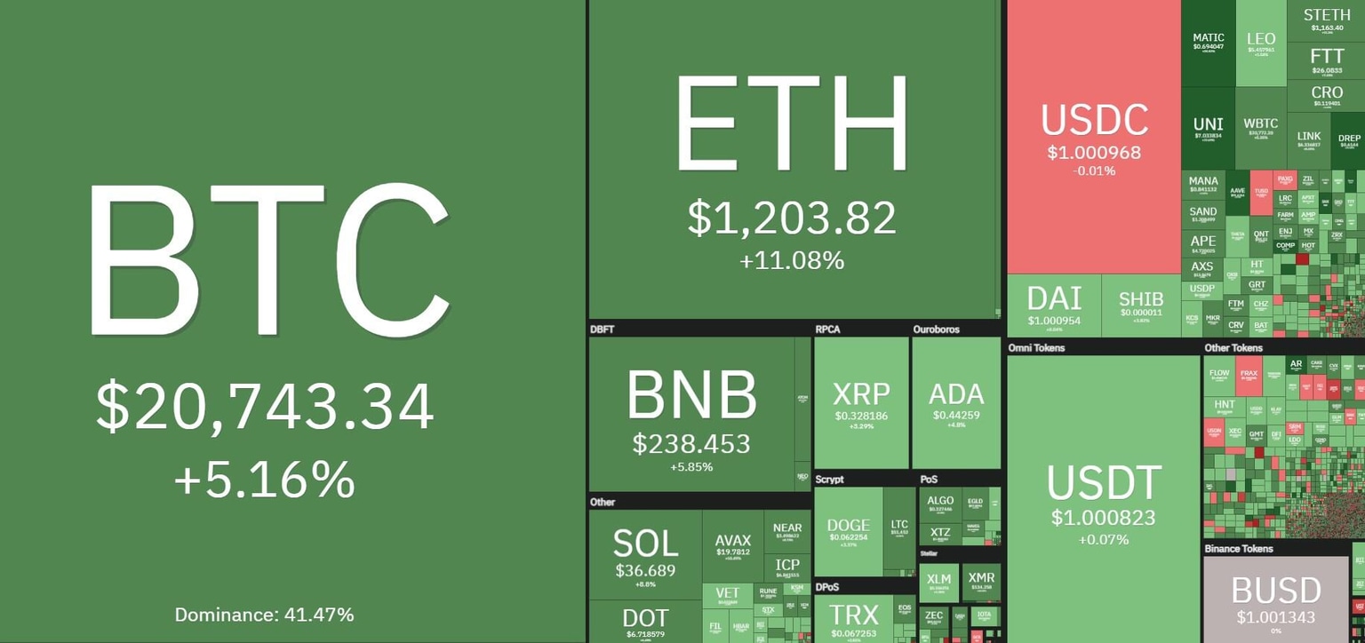 UNI, MATIC and AAVE surge after Bitcoin price bounces back above $20K