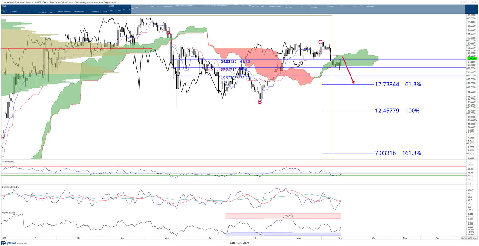 - Uniswap price is trading inside the Cloud.