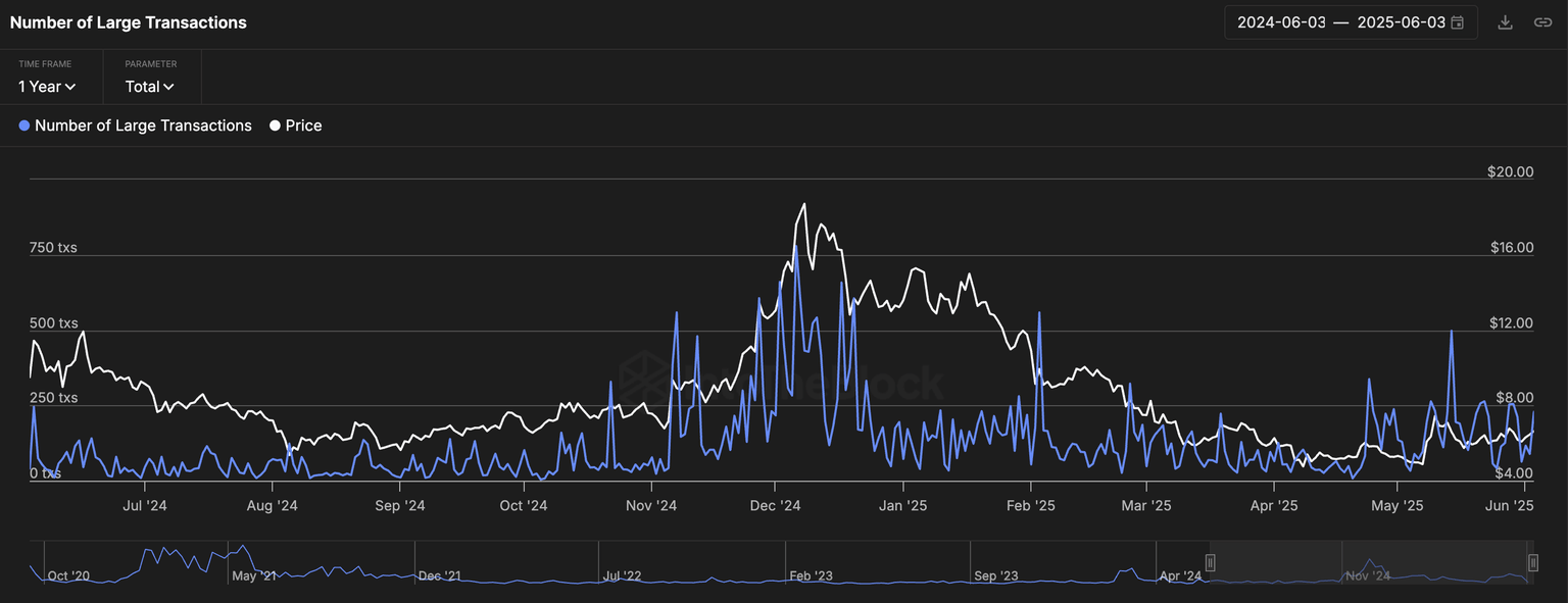 IntoTheBlock’s data shows that the number of large transactions, those of over $100,000, has increased significantly in the last month. Since such a large trading volume is not readily available for retail investors, it is generally considered an institutional-level movement.