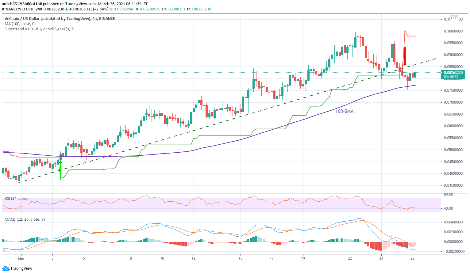 Given the downbeat MACD and sell signal from the Super Trend indicator joining the cryptocurrency pair’s trading below the key resistance line, VET sellers have the gate pass.