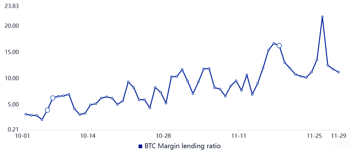 OKEx USDT/BTC margin lending ratio. Source: OKEx