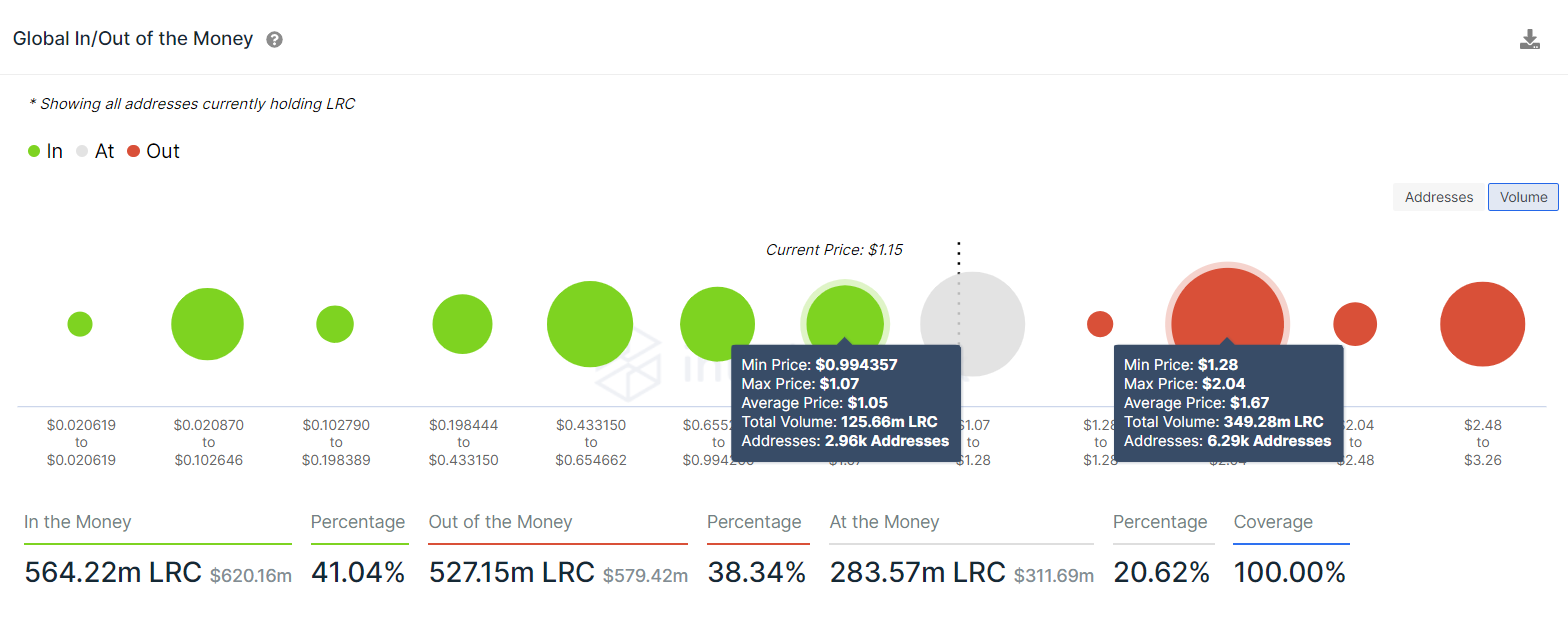 This area extends from $1.28 to $2.07, where roughly 6,300 addresses that purchased nearly 349 million LRC tokens at an average price of $1.67 are “Out of the Money.” Interestingly, this target coincides with the bullish outlook from a technical standpoint.