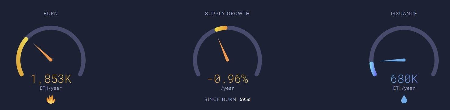 Part of the Ethereum merge was designed to make Ether deflationary and on March 23, Ether reached an all-time token emissions low of -0.1% on a yearly basis.