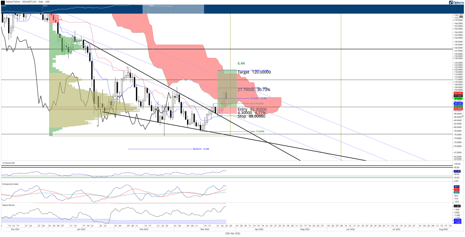 Bulls successfully pushed Solana price above and closed above those levels. Thankfully, for bulls, most of those prior resistance zones have created a substantial price range of support, specifically at the $92 area where the Kijun-Sen, Tenkan-Sen, Senkou Span A, and the 50% Fibonacci retracement. So the pullback here shouldn’t be viewed as a sign of weakness but a possible sign of strength.
