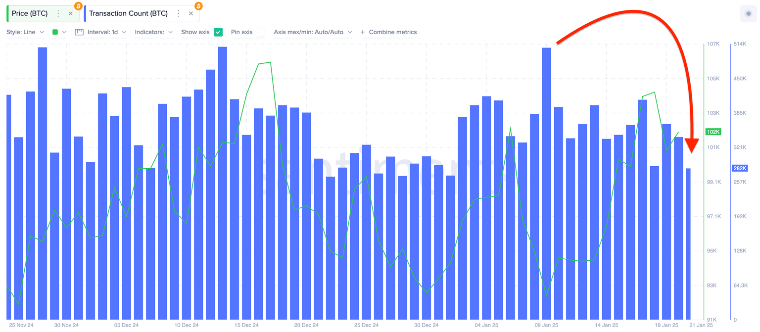 Bitcoin price hit 25% year-to-date gains when it crossed $109,000 on Monday, driven by positive speculations around ETF approvals and crypto friendly policies, heating ahead of Trump’s inauguration. However, there has been a considerable decline in BTC on-chain transaction count since June 9.