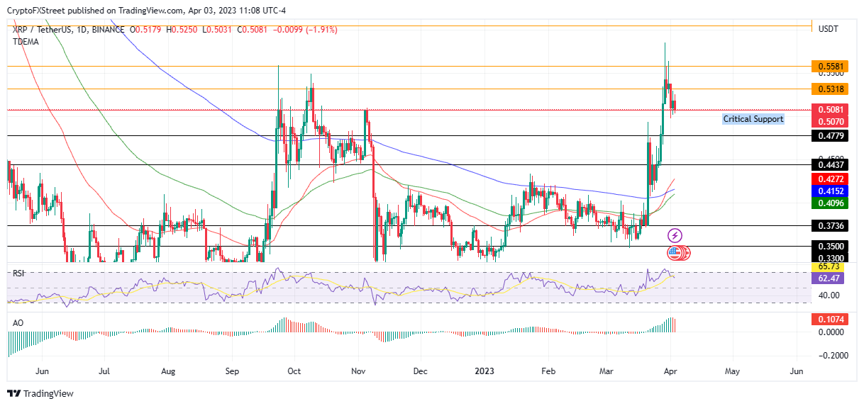 At the time of writing, Ripple price is testing the critical support level at $0.507 a the bullish momentum displayed during the March rally fades. This comes after investors anticipated a summary judgment during late March or early April, but Ripple’s legal representative hinted at a prolonged wait.
