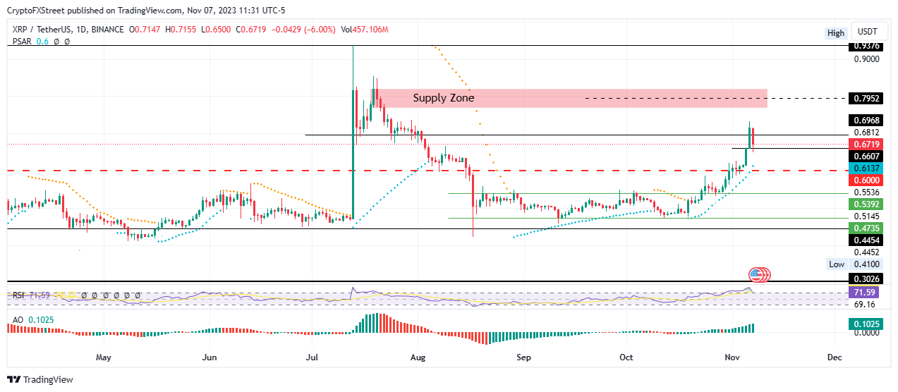 On the other hand, if selling pressure overpowers buying momentum, Ripple price could extend the slump, decisively closing below the $0.66 support. In a more dire case, the slump could extend past the Parabolic SAR, potentially flipping the $0.60 level into resistance and clearing the clog for a spiral south.