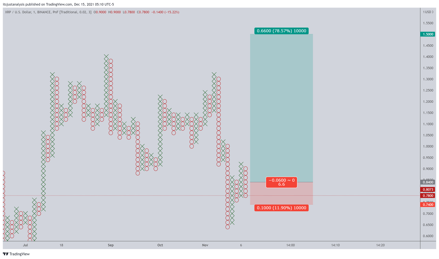 XRP/USD $0.02/3-box Reversal Point and Figure Chart