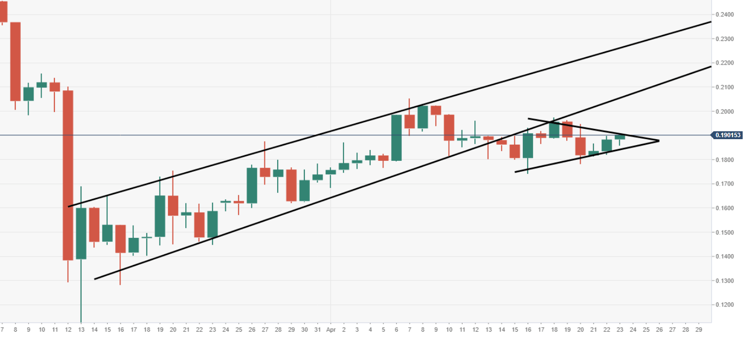 A tight range remains the case via the daily chart view, moving between $0.1800-0.2000.