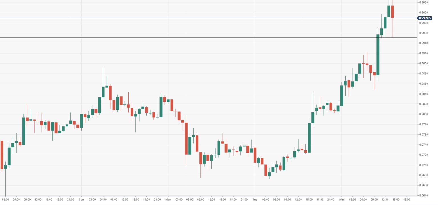 - The next major target area for the bulls will be the psychological $0.3000 mark.