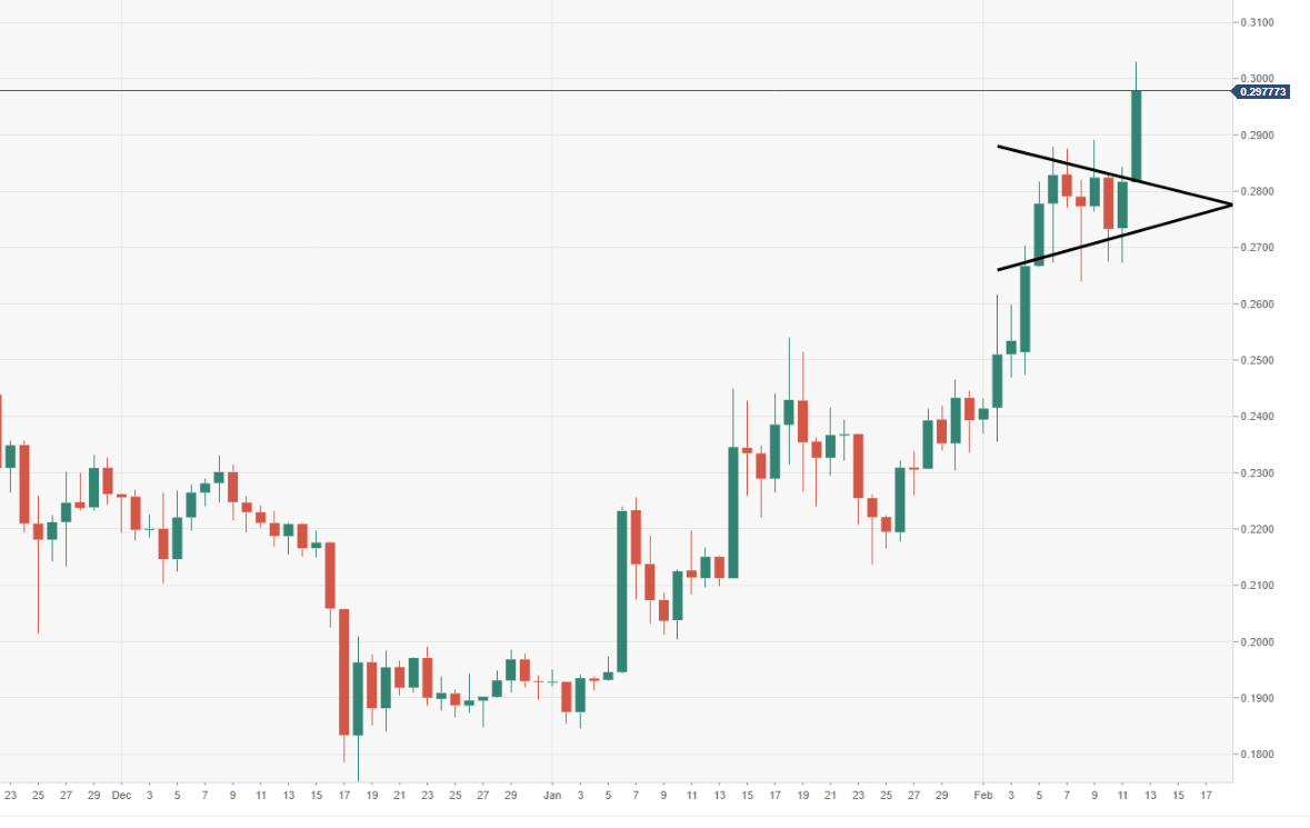 XRP Price Analysis: XRP/USD is rocketing higher following pennant breakout