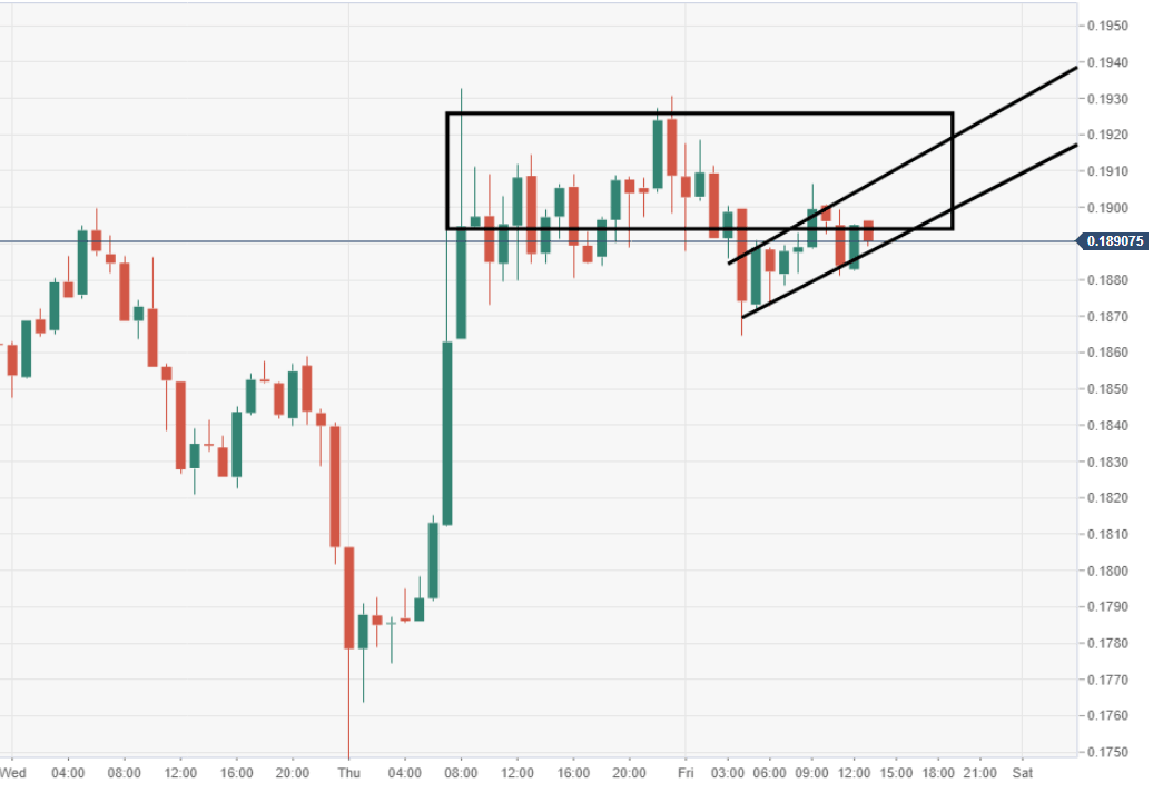 The bulls are failing to break down the chunky area of supply running into the early $0.19 price region.
