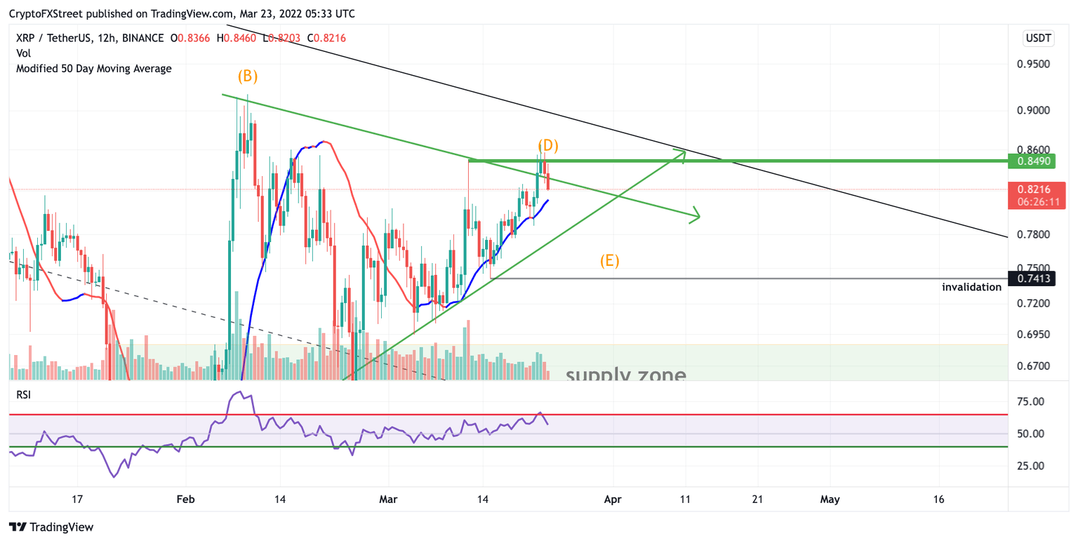 XRP price overall trend is looking extremely bullish as the SEC lawsuit is likely coming to an end. However, traders are continuously being stifled. Ripple has failed to break out past the previous swing high. The 12-hour chart hints at failure in trend after bulls failed to close above the breakout level two consecutive candles on the 12-hour chart.