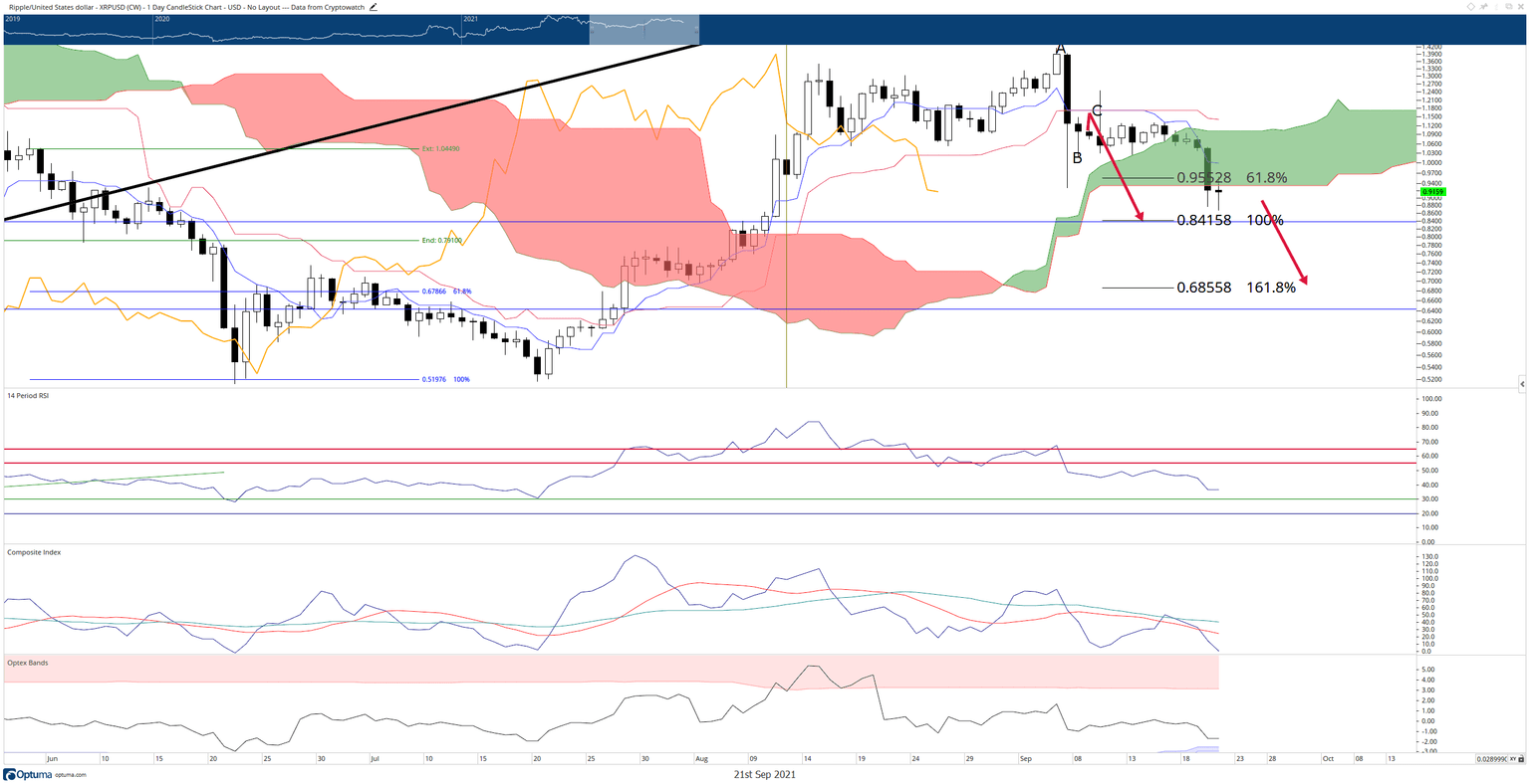 - XRP price tanks as much as -16.5% Monday after bulls cannot support the $1.00 or $0.90 value area.