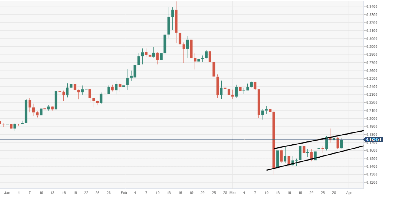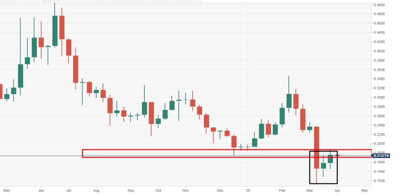 - There is a barrier which continues to contain upside sitting at the $0.1800 mark.
