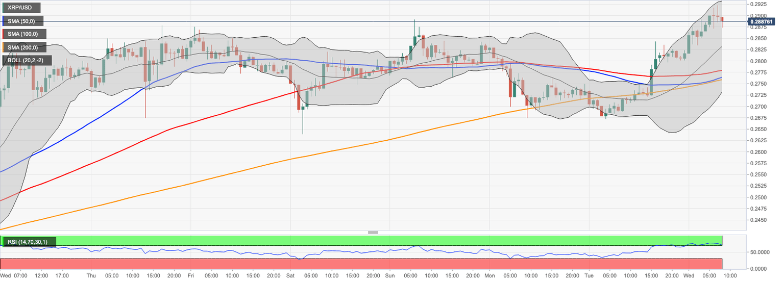 - XRP/USD attempts to break above $0.2900 but retreats to the previous range.