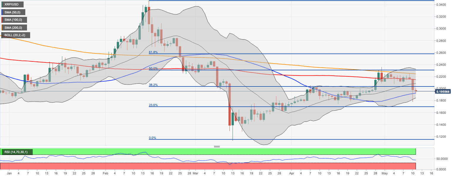 XRP/USD managed to recover above daily SMA50 at $0.1924 after a collapse to $0.1780 during Sunday’s mega sell-off. At the time of writing, the coin is changing hands at $0.1927, down 2.7% on a day-to-day basis and 2.3% since the beginning of the day.