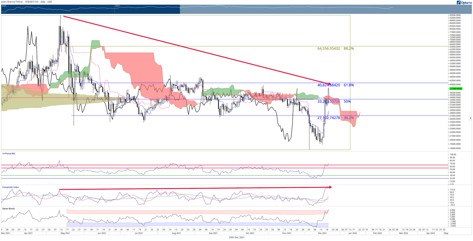 Speculators will raise the most crucial question: Is YFI overbought, or is it positioning for another drive higher? From an Ichimoku perspective, if Yearn Finance can close above $35,600, YFI will have completed all conditions needed for an Ideal Bullish Ichimoku Breakout entry. This would be a massively bullish event as the last time Yearn Finance completed that entry criteria was on April 4.