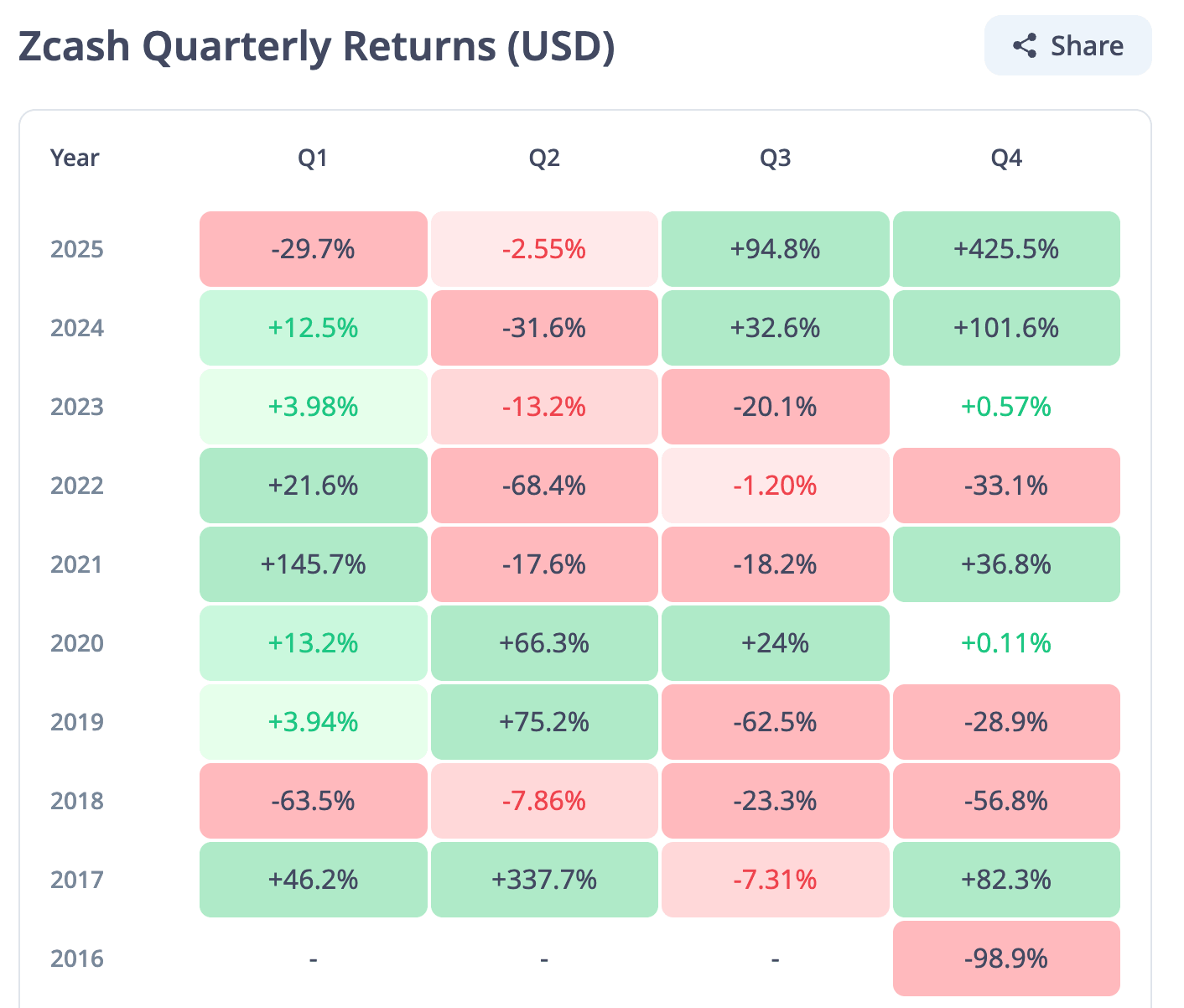 Zcash quarterly returns | Source: CryptoRank