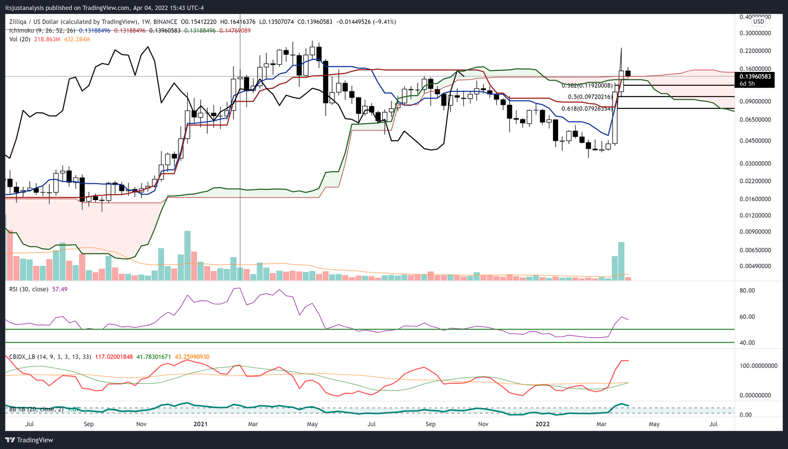 Last week’s candlestick close for Zilliqa price confirmed an Ideal Bullish Ichimoku Breakout – but confirmation and follow-through are necessary. However, given the spectacular rise over the past two weeks, profit-taking could dent any further bullish momentum in the near term.