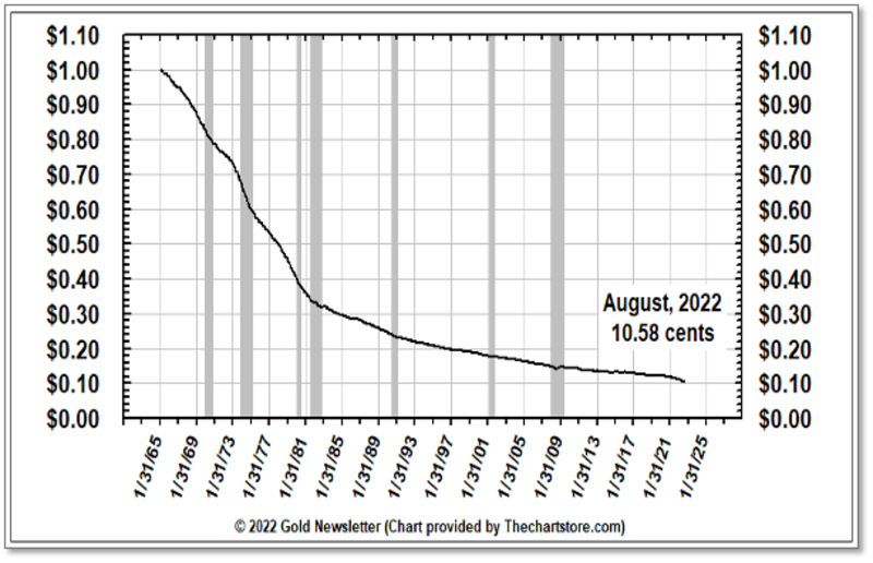 The realization that the U.S. dollar has experienced a loss of purchasing power that was almost identical to that of the Roman denarius — which was directly associated with the collapse of that empire — really wakes up an audience of investors who have never been aware of what has been happening around them.