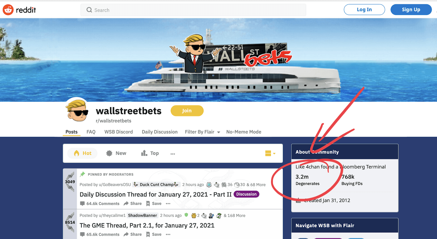 And the WallStreetBets group on Reddit — the one whose purpose is “making money and being amused by it,” their words, not mine — is growing by leaps and bounds.
