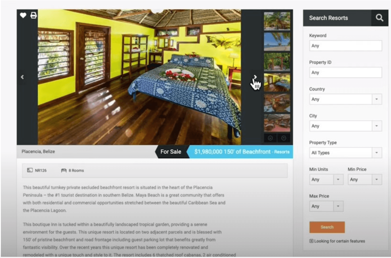 Then we found another one in Belize. This one has 6 cabanas, which might not be big enough for what I have in mind, and it costs 1.9 Million dollars.