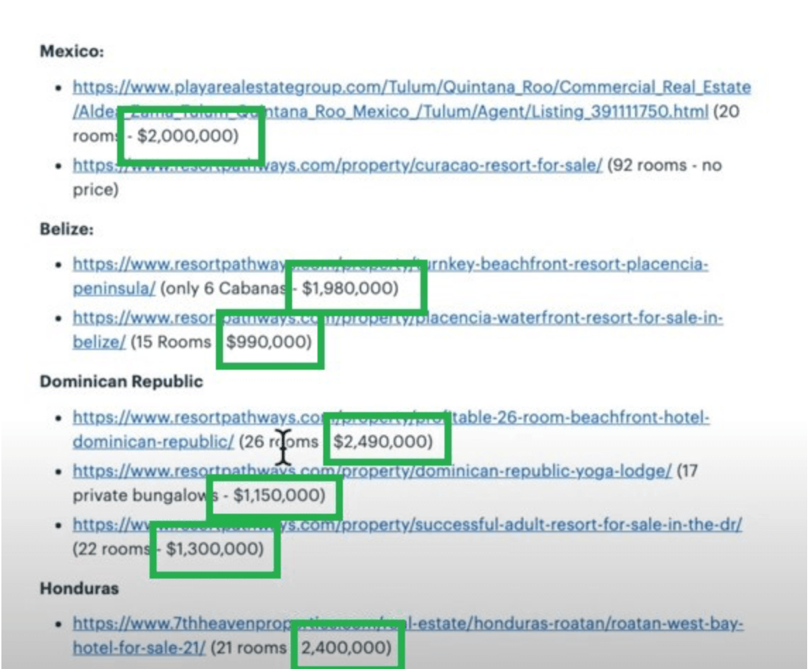 The resorts that I started to look into were around 26 rooms, 17 rooms, 22 rooms, so let’s just say that I will find something around the 2 million dollar mark that has maybe 25 rooms.