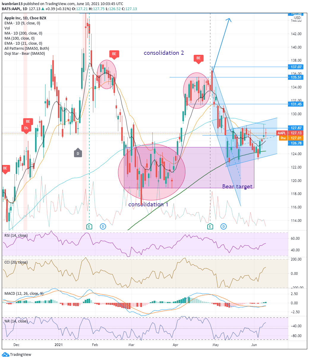 AAPL Stock Forecast: Apple Inc remains in tight range between $124.42 and $131.45