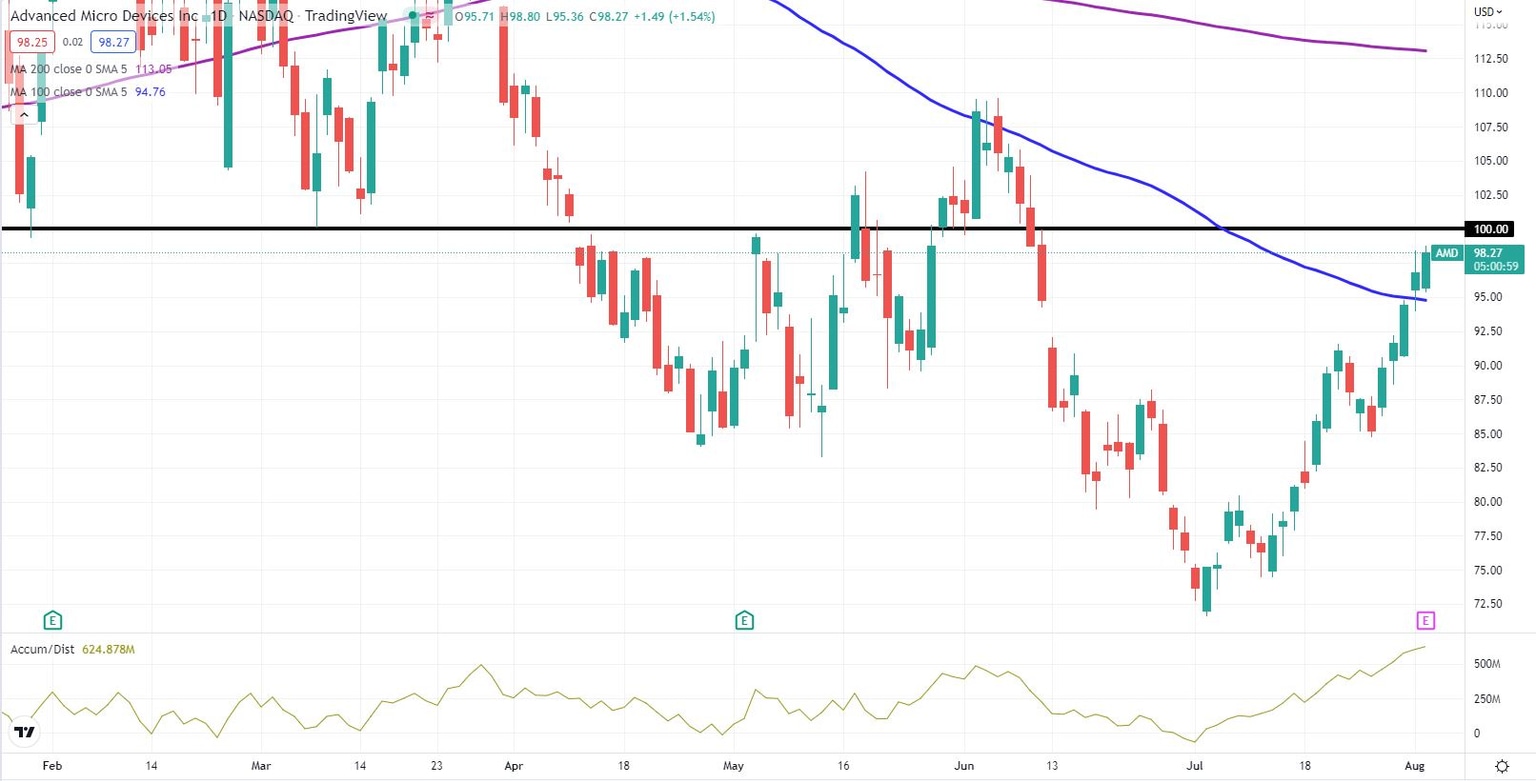 Advanced Micro Devices stock forecast: Targeting $100 psychological resistance