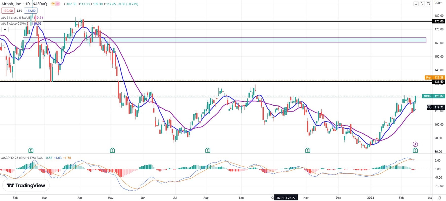 Airbnb stock bulls should be excited with ABNB breaking through the $131.50 resistance line that had once worked as strong support in March 2022 before May's gap down. The May 9, 2022, plunge left a gap from $133.04, which has now been closed in Tuesday's afterhours session. To be sure, bulls will require a close above $133.04 in Wednesday's regular session.
