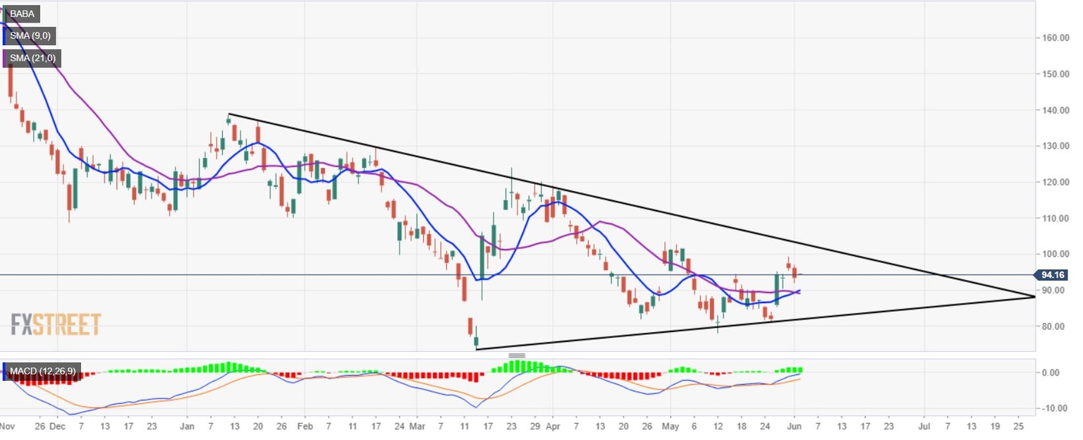 Alibaba Forecast: A symmetrical wedge holds bulls in place