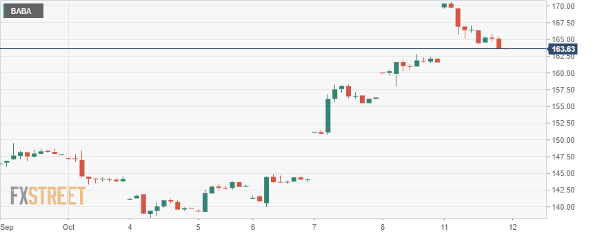 - BABA stock closes up 1.5% but shies away from intraday highs.