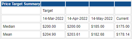 Wall Street remains upbeat on prospects for Amazon. While the average price target has fallen by $25 since March, the average of $175 remains a colossal 75% above the current closing price. This is too optimistic in our view.