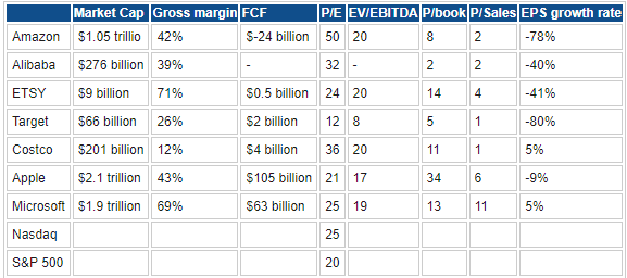 Amazon: Key valuation rating metrics