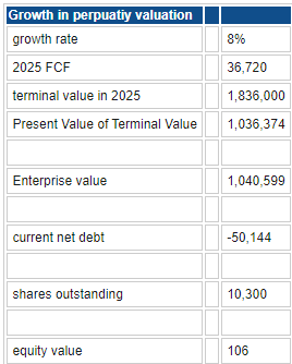 Using a traditional DCF model with forecasted inputs for free cash flow, net debt, capex and revenue give us a DCF price target of $106 for Amazon. This is more or less in line with the current price of $102.31, so the efficient market theory appears to be working here!